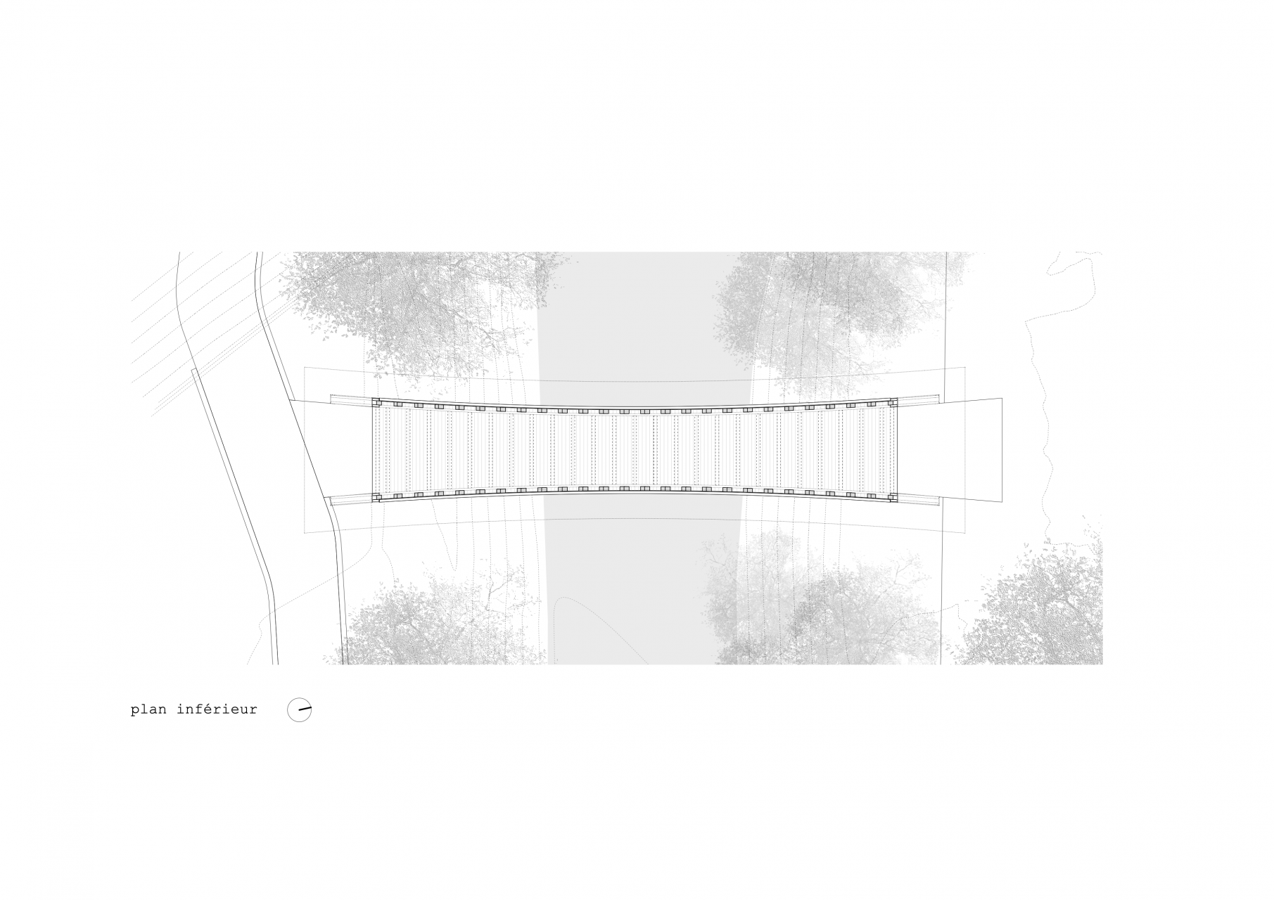 En franchissant la rivière, la passerelle des Buissons propose une nouvelle liaison entre les habitations au sud des berges et le centre ville de Bulle, au nord. Elle complète ainsi le réseau de mobilité douce tout en valorisant les rives de la Trême. Parallélépipède ajouré aux arêtes arquées, sa structure est une réinterprétation contemporaine de la poutre à treillis. Ses diagonales sont constituées de l’entrecroisement de trois à quatre lattes (27/200mm) qui travaillent en traction et en compression. Ce treillis est pincé entre deux membrures dont la courbure en partie basse augmente le tirant d’air face au risque de crues. La protection de l'ouvrage contre les intempéries est assurée par un toit légèrement incliné, complété d'un avant-toit d'une longueur de 1.2 m, couvert d'une ferblanterie en cuivre. La passerelle a été assemblée sur la parcelle voisine et mise en place en une nuit avec une grue de 500 t. L'ouvrage est labellisé Bois Suisse.
